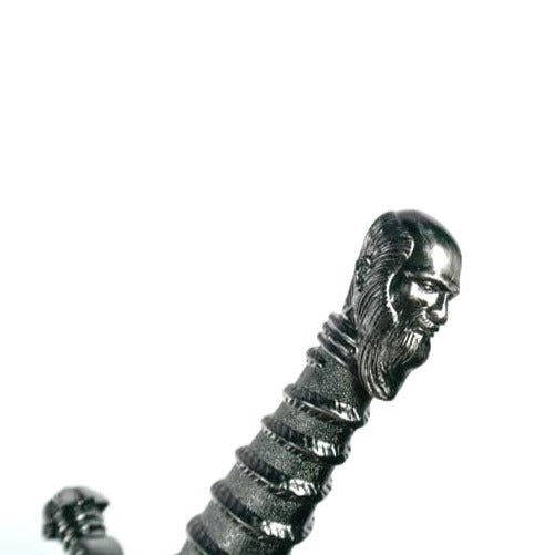 At an overall length of 41cm, the Sword of Ojeda features a menacing bearded head adorning the pommel, exuding an air of ominous authority. The cast zinc alloy hilt, intricately designed, captures the essence of Templar strength. The stainless steel blade, measuring 33cm, ensures a sleek and formidable appearance, reflecting the deadly precision of this Templar weapon.