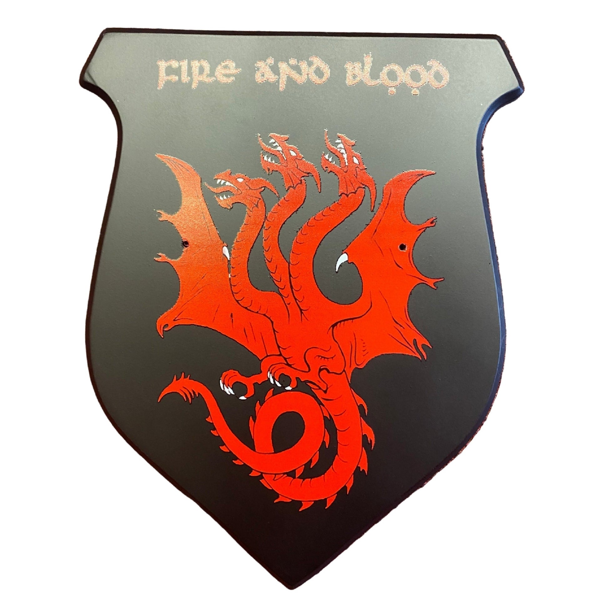 Forged from high-quality stainless steel, the blade features a darkened, battle-worn finish that evokes the ancient might of Valyria. The sword’s hilt is crafted with ornate detailing, including a three-headed dragon motif and deep crimson accents that reflect the fiery pride of House Targaryen. A custom display plaque emblazoned with the Targaryen sigil (three-headed dragon) is included, perfect for mounting the sword as a centrepiece of any collection.