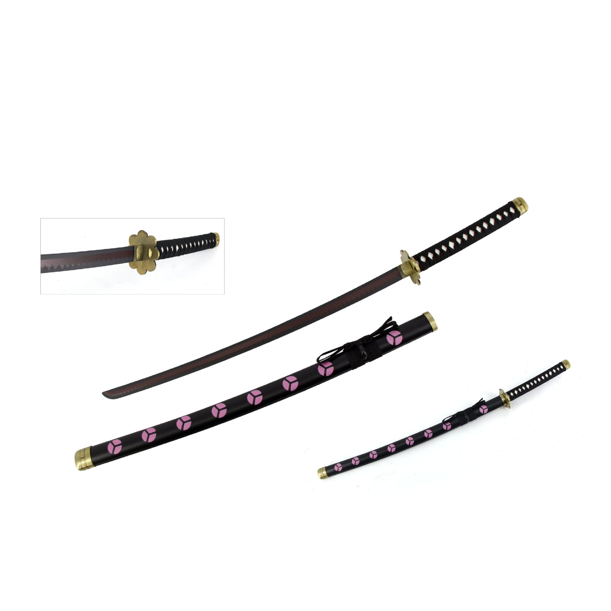 Whether displayed on a shelf, mounted on a wall, or part of a cosplay ensemble, the Zoro Shusui Black & Pink Sword becomes a commanding centerpiece, allowing enthusiasts to immerse themselves in the world of One Piece and the indomitable spirit of Roronoa Zoro.